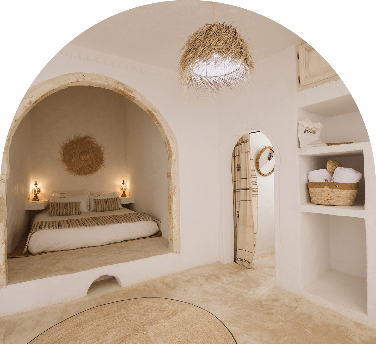 La suite Kenza est une ode à la déesse du soleil, évoquant la splendeur éblouissante du soleil qui embrase les terres tunisiennes.